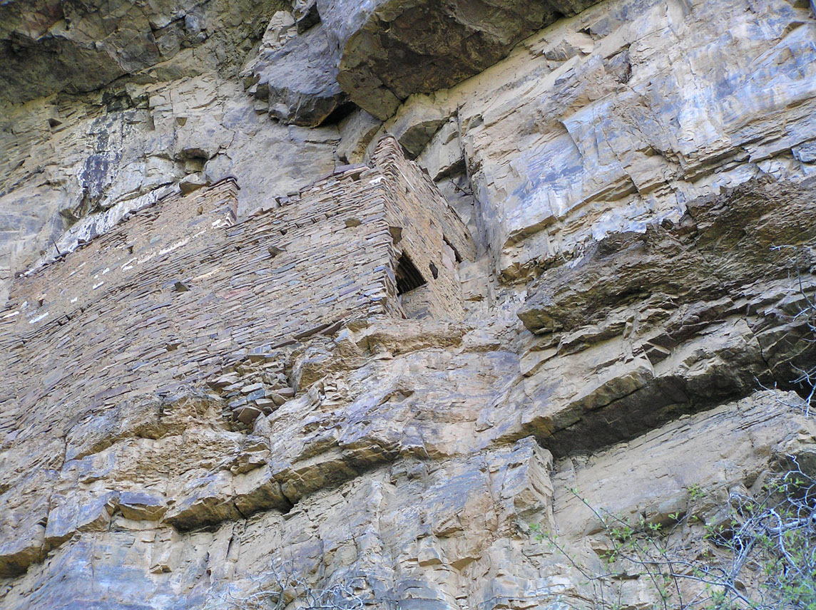 The ruin blends so well into the cliff face that you may not see it at first. Access is from the left side, and the only way to reach the ledge on the right is to pass through the interior of the ruin. The doors are very small. If you have a daypack, leave it outside. But bring your camera--you'll definitely want it.