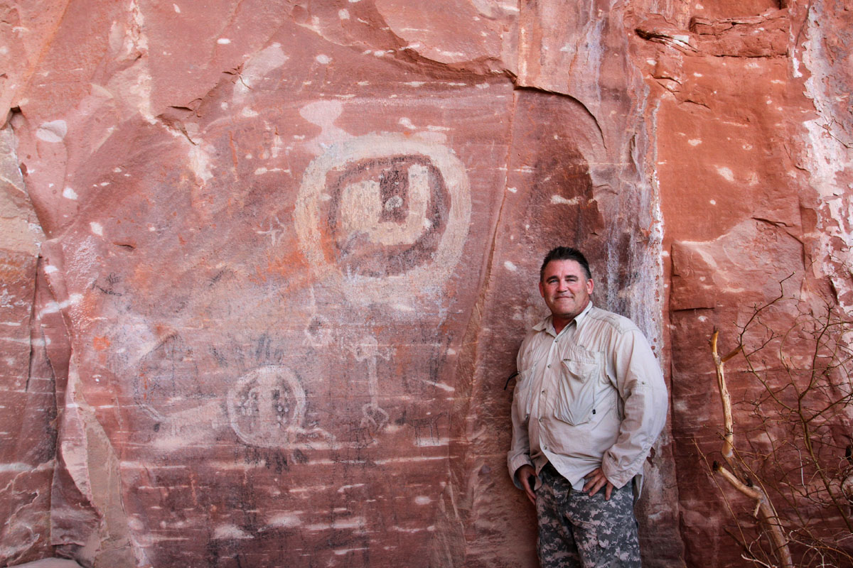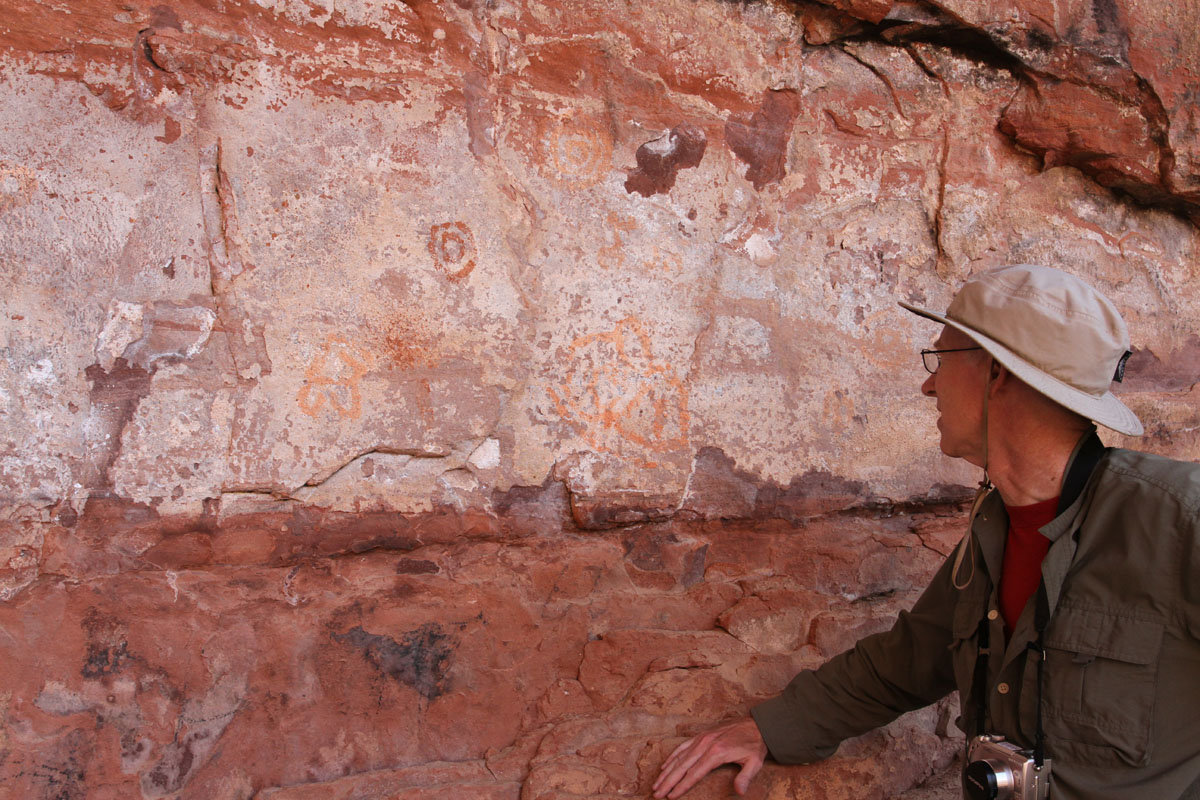 A couple of miles from the Sycamore Canyon cliff dwelling is a protected alcove containing several panels of pictographs. Petroglyphs, which are pecked or scraped into the rock, are common in Arizona; but pictographs, which are colored with pigments, are fairly rare.