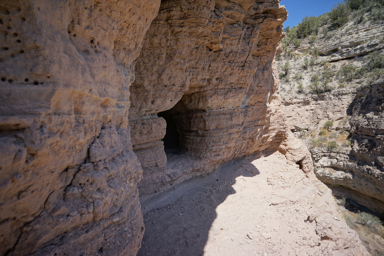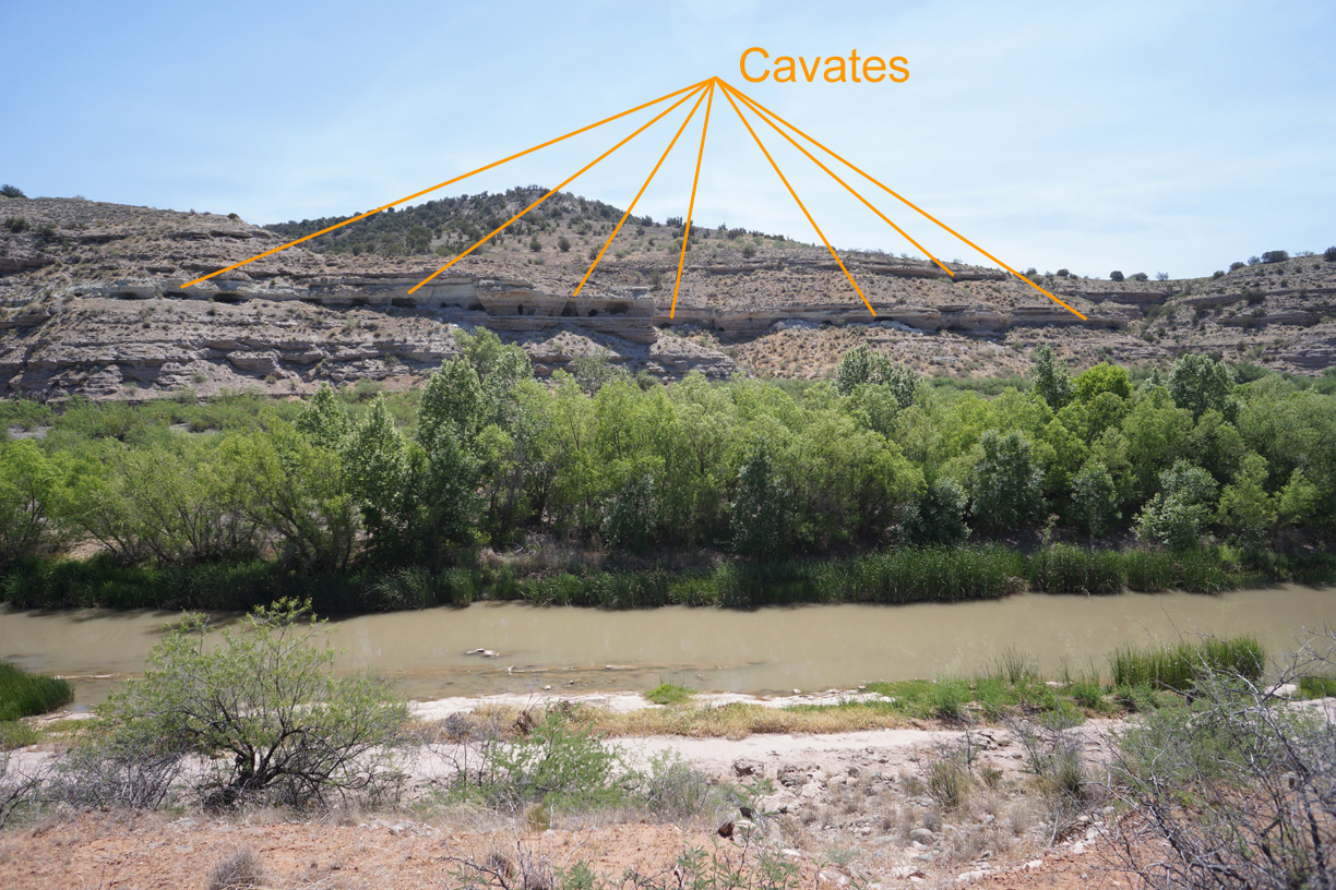 Mindeleff Cavates consists of about 89 separate dwellings and a total of about 343 rooms, hand carved out of a layer of soft sandstone sandwiched between two harder layers of rock along the east banks of the Verde River south of Camp Verde. At its peak, it would have housed at least 250 people, and possibly significantly more. The following photos provide a taste of what this site has to offer: