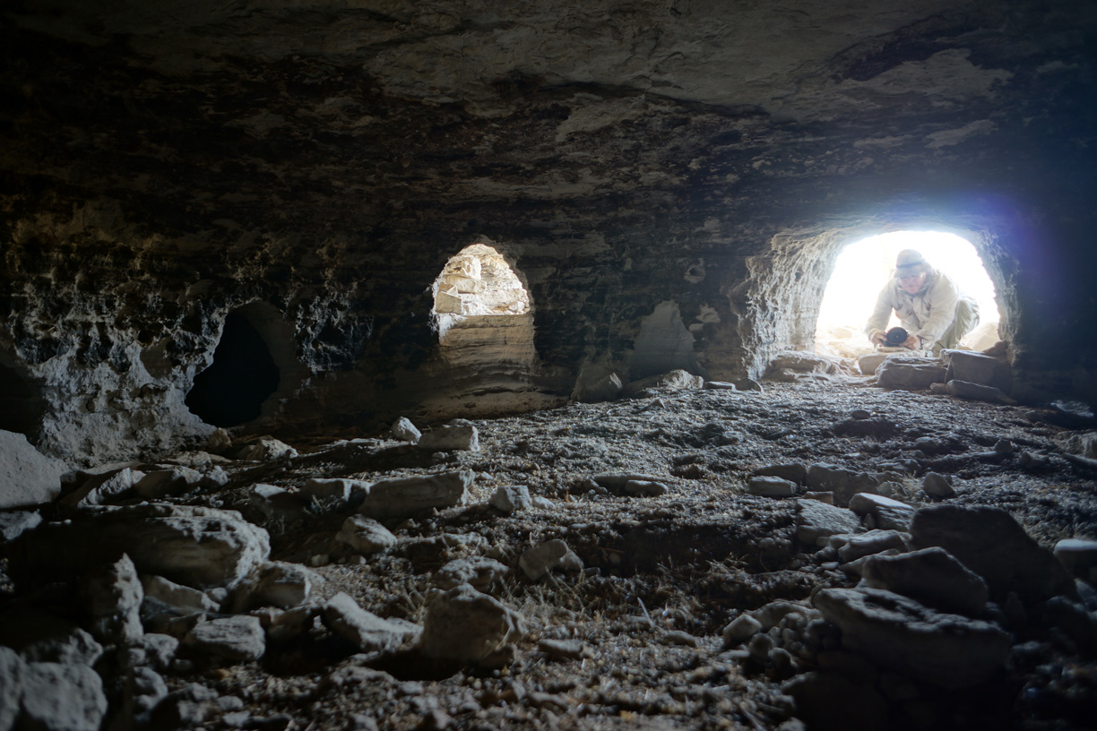 A typical dwelling is characterized by a small opening in the cliff face, perhaps three feet wide by four feet high, that opens up into a round or oblong main room typically fifteen feet across and tall enough to stand up in. The main room will generally have one or more small alcoves for sleeping or storage, and may also have tunnels leading to adjacent dwellings or to rooms deeper into the cliff. The floors are generally flat, in some cases having been built up with rocks and mud plaster, and frequently contain depressions that may have been used for cooking fires. There is some evidence that masonry walls were once used to partition large rooms, and to protect some of the larger entrances. However most of these walls have been destroyed by prehistoric and historic looters, and any portable artifacts have long since disappeared.