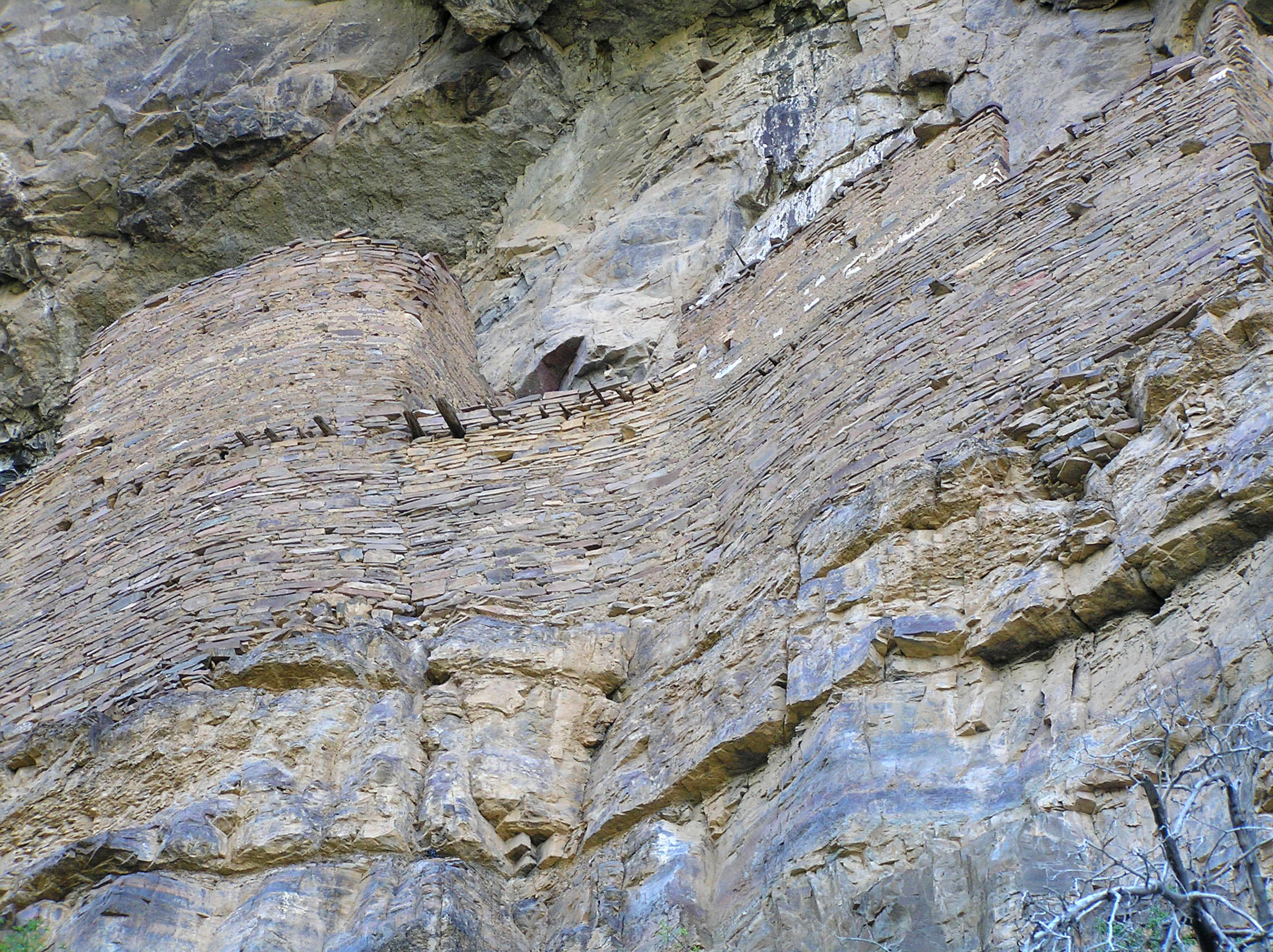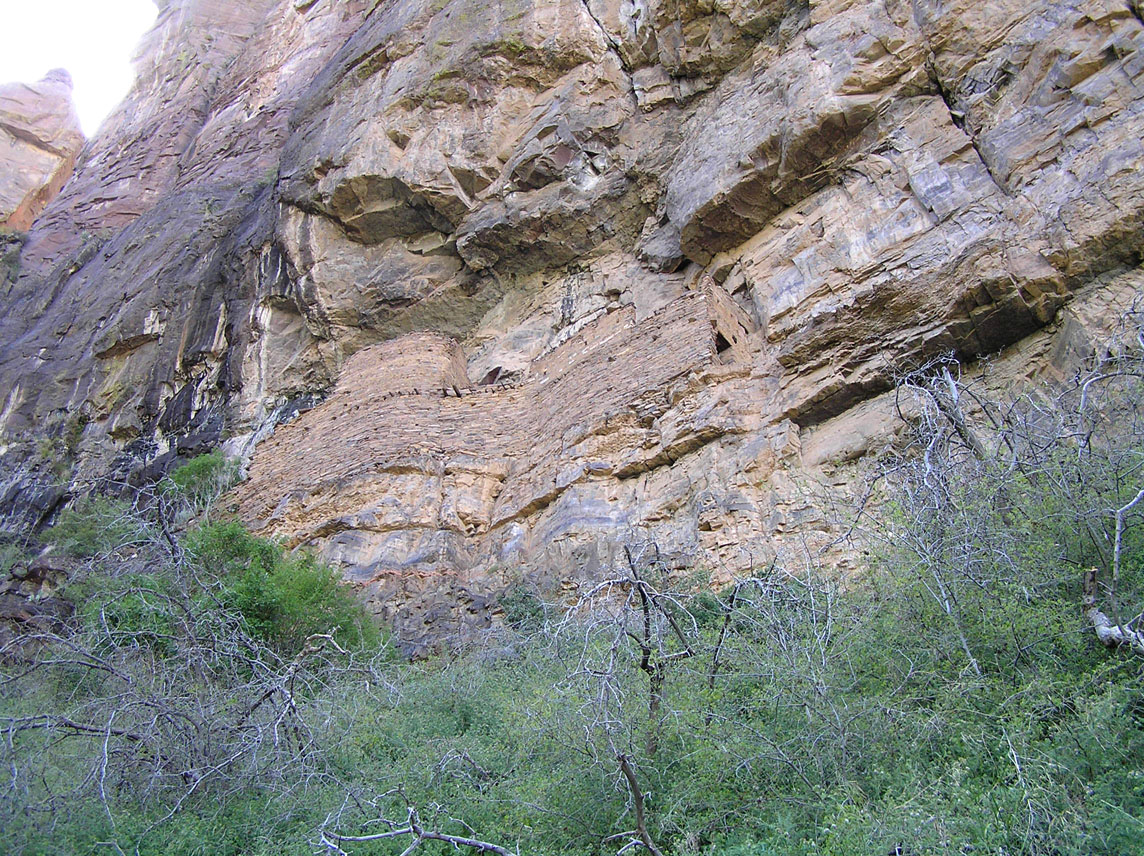 The ruin blends so well into the cliff face that you may not see it at first. Access is from the left side, and the only way to reach the ledge on the right is to pass through the interior of the ruin. The doors are very small. If you have a daypack, leave it outside. But bring your camera--you'll definitely want it.