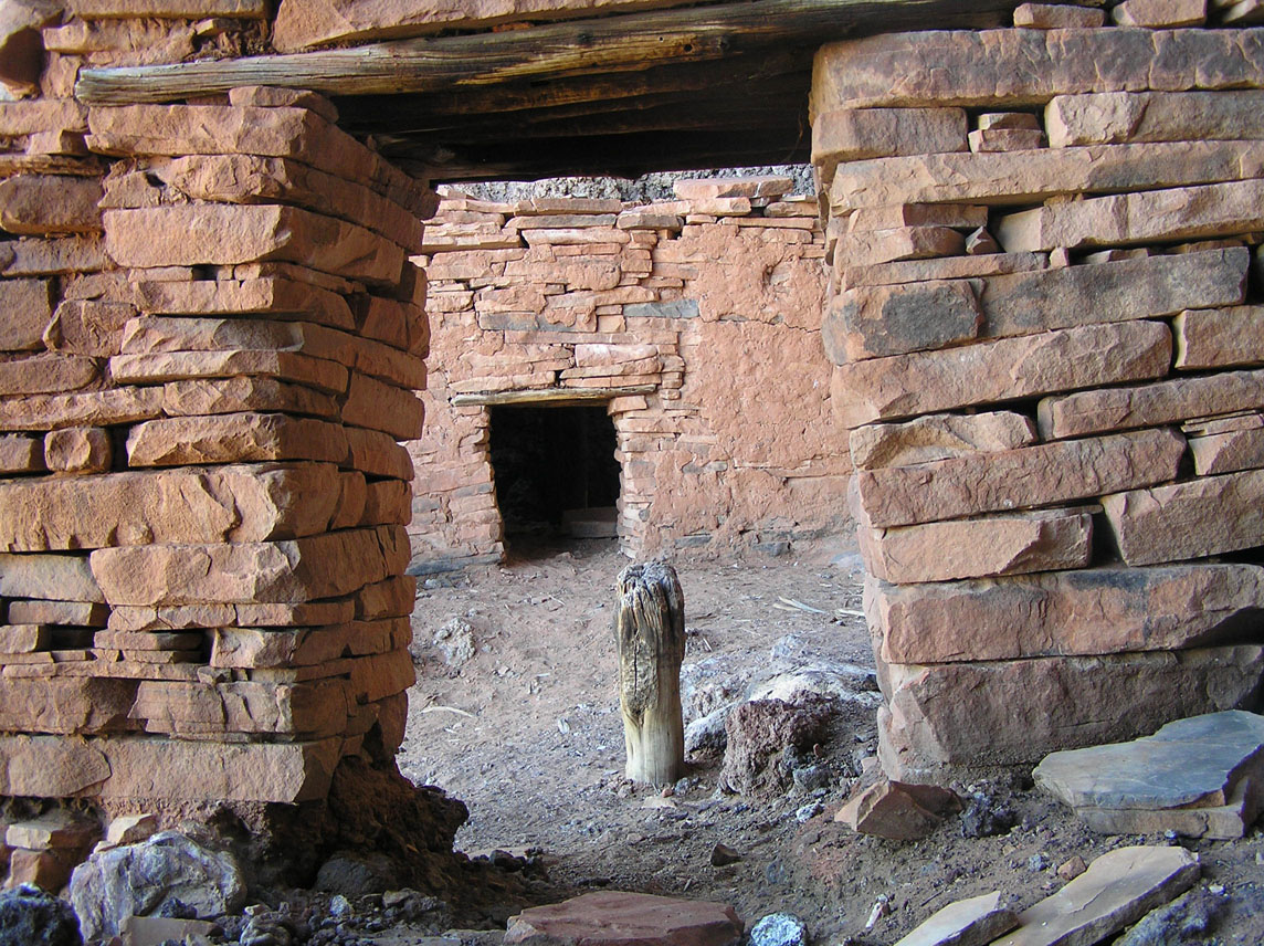 Photo 6 shows the wooden lintels used to support the walls over openings. The concept of an arch, which can support a much larger opening, was never developed in the American Southwest.