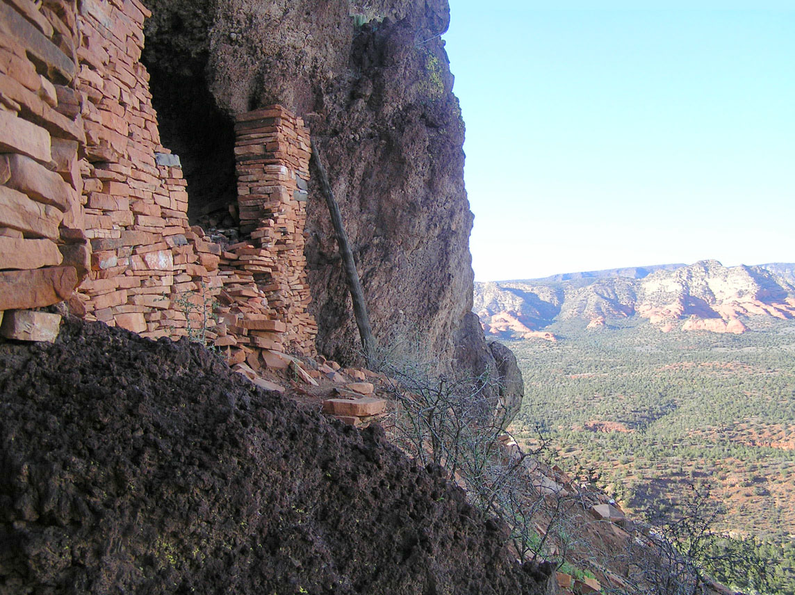 This was Sinagua territory. There are Singuan ruins in Sedona and Flagstaff, as well as major pueblos all along the Verde River as far south as what is now Horseshoe Reservoir, just north of Phoenix. Three large (~100 room) Sinaguan pueblos at the northern end of the Verde River Valley--Hatalacva, Tuzigoot, and Bridgeport--all lie within 30 miles or so of Sycamore Canyon.